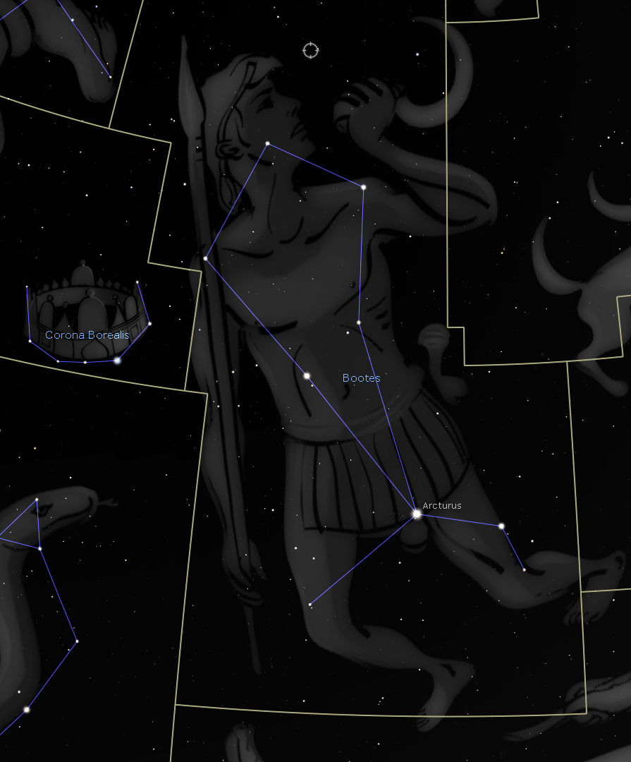 But is the Boötes sentinel really sitting on a cloud, and where is the crown that he ought to be wearing on his head by now?