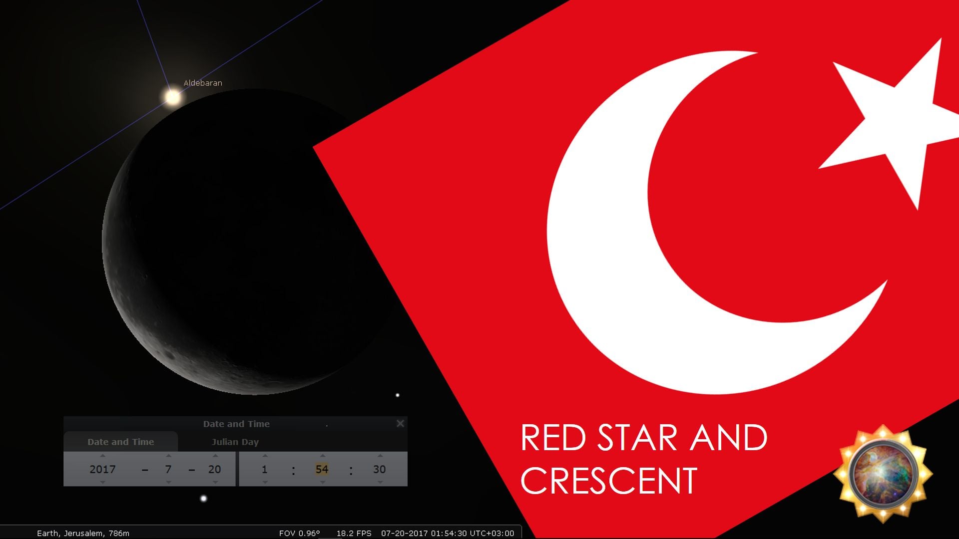 For these reasons, I would like to contrast the image of the falling star-lamp and its red star Aldebaran with another symbol. It is the symbol of Islam and the national flag of Turkey—an important part of the former Ottoman Empire, which has already played the leading role in a fifth and sixth trumpet once.[27]