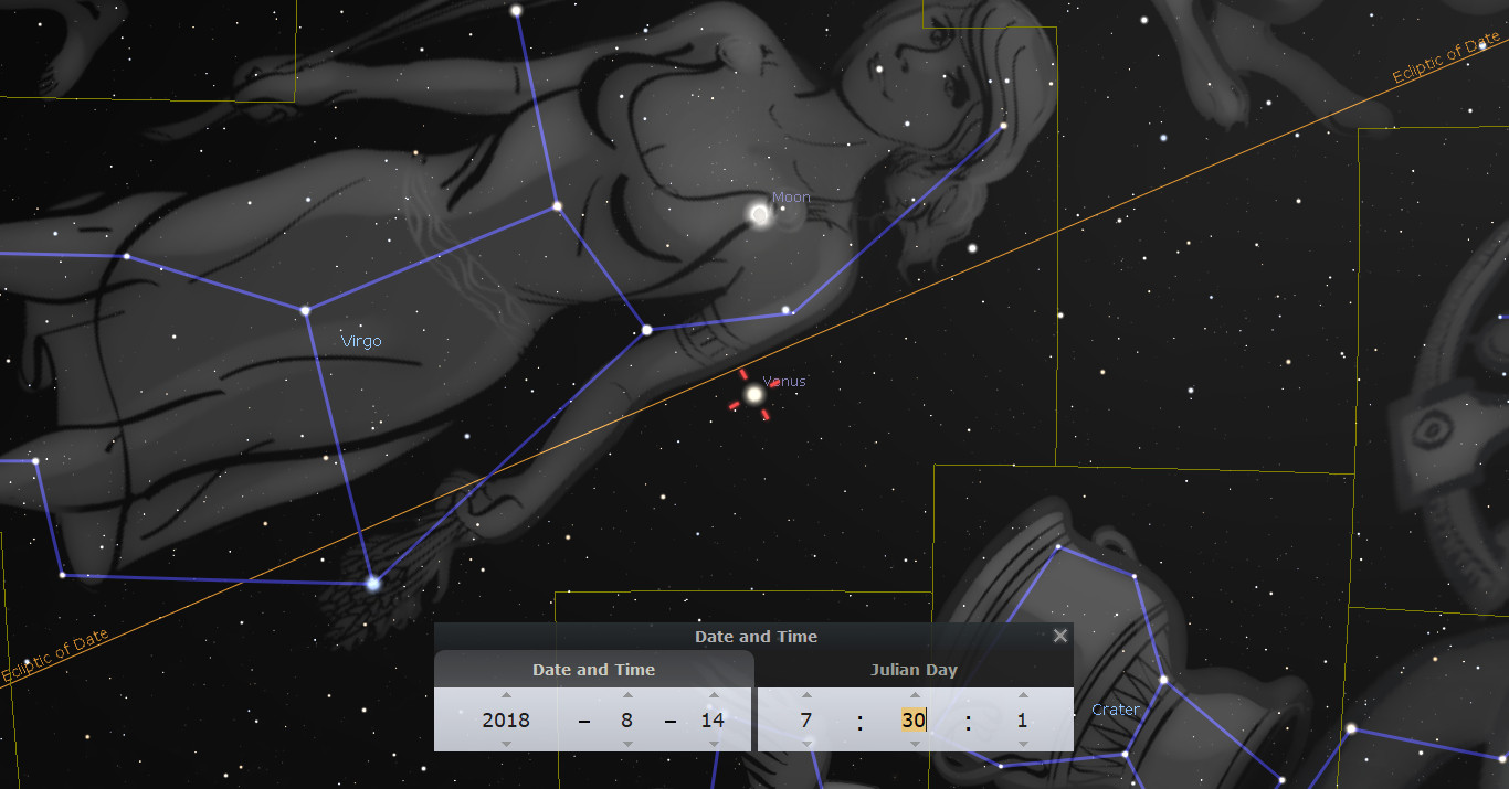 August 14, 2018 – Conjunction of the moon and Venus in Virgo.
